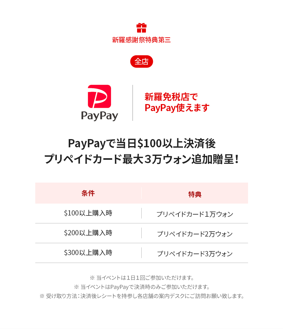 - 当特典は、新羅免税店の各案内デスクにご訪問頂く必要があります。